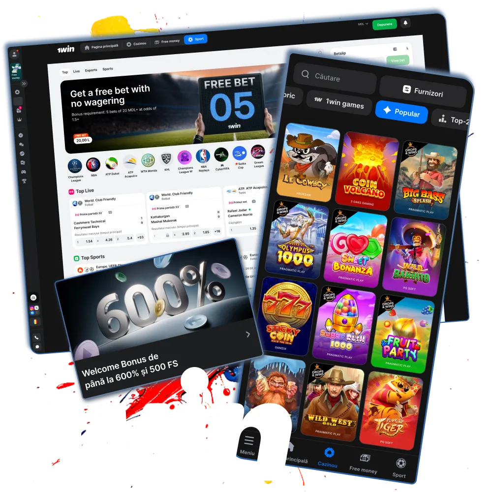 1win este o platformă de pariuri sportive și cazinou online licențiată internațional, disponibilă legal pentru jucătorii din Moldova. Aici poți paria pe fotbal, tenis, baschet și alte sporturi, inclusiv pariuri live pe meciuri în desfășurare. În secțiunea de cazinou găsești sloturi, ruletă, blackjack și jocuri cu dealeri live. Poți juca de pe calculator sau din aplicația mobilă pentru Android și iOS. Ca utilizator nou primești un bonus de bun venit de 100% până la 9.000 MDL și 70 de rotiri gratuite, după înregistrare și primul depozit.