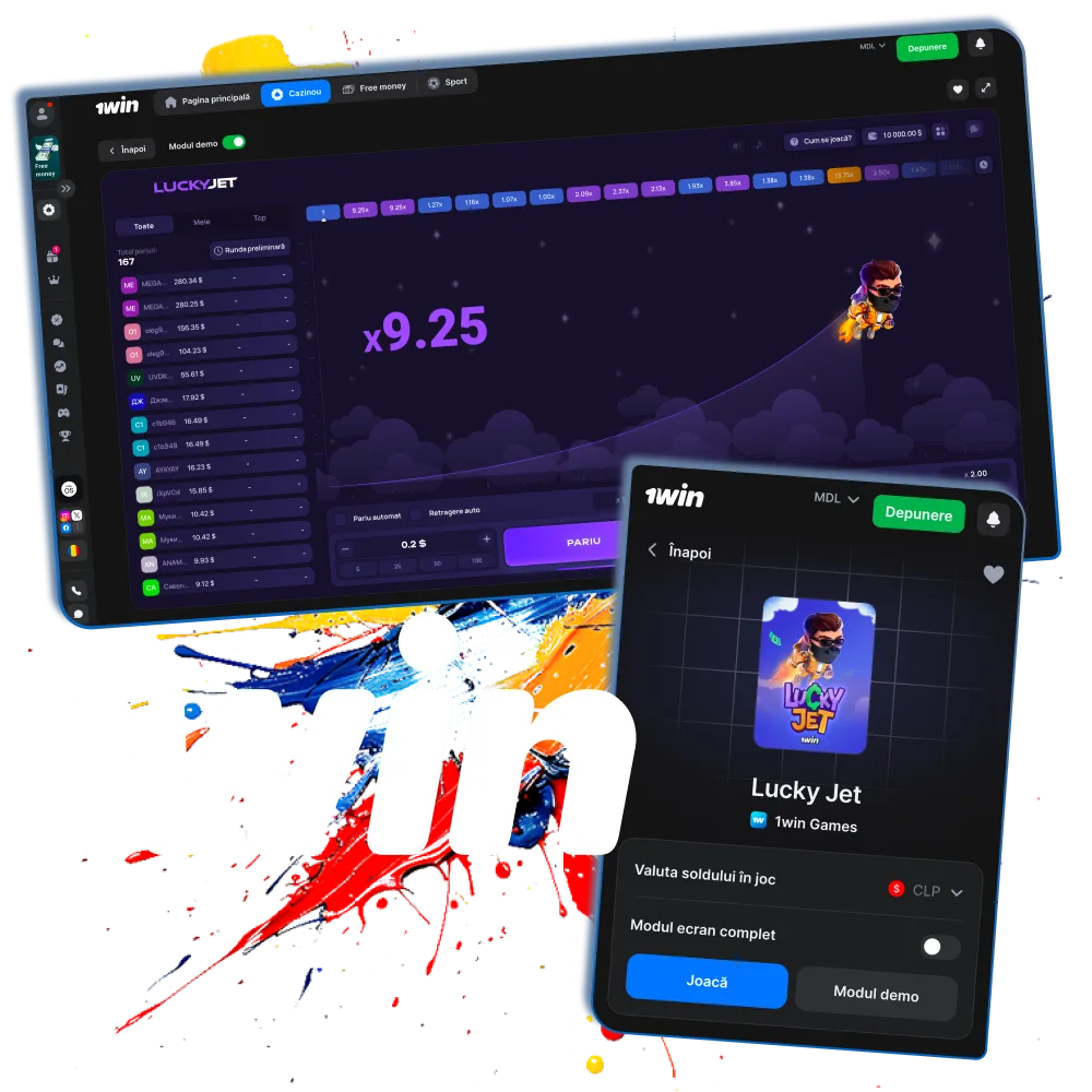 Jucătorii din Moldova pot juca Lucky Jet direct pe telefon, prin aplicația 1win sau varianta de site adaptată pentru mobil. Funcțiile principale rămân aceleași ca pe desktop: pariere rapidă, cashout instant, acces la bonusuri și statistici live.